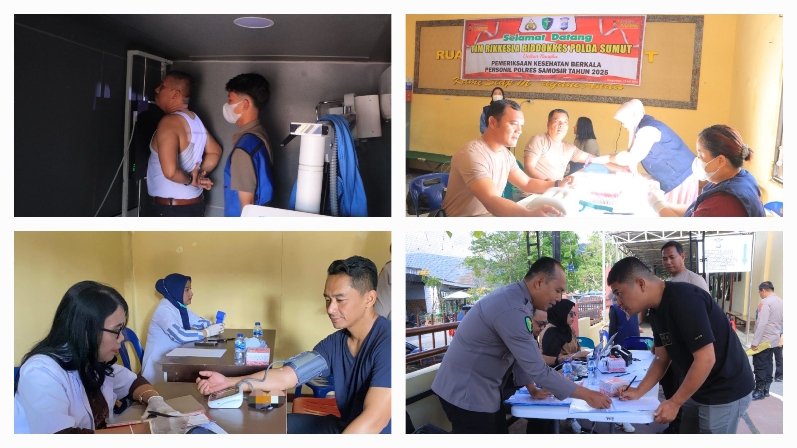 Kegiatan ini merupakan kerja sama antara Biddokkes Polda Sumut dengan Sie Dokkes Polres Samosir, serta melibatkan tenaga medis profesional dari Klinik Laboratorium Haga Medan. Dari Biddokkes Polda Sumut, hadir AIPTU Tumino dan Brigpol Afriansyah untuk memantau langsung jalannya pemeriksaan.