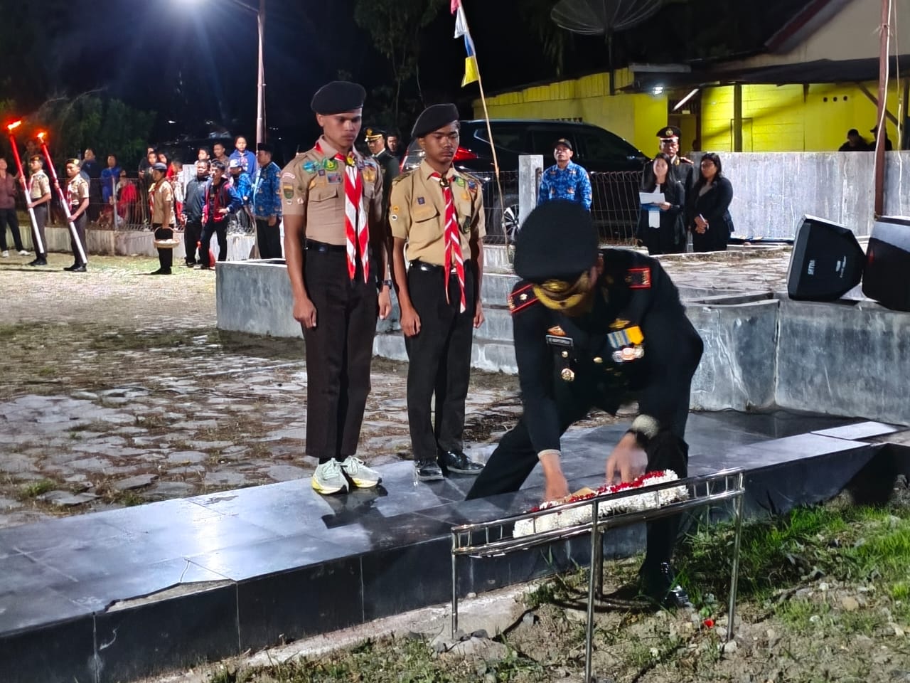 Upacara berlangsung hingga pukul 00.30 WIB dengan tertib dan penuh khidmat. Dalam sambutannya, Wakapolres Kompol Briston A.M. Napitupulu menegaskan pentingnya momentum renungan suci sebagai wujud penghormatan atas jasa para pahlawan.