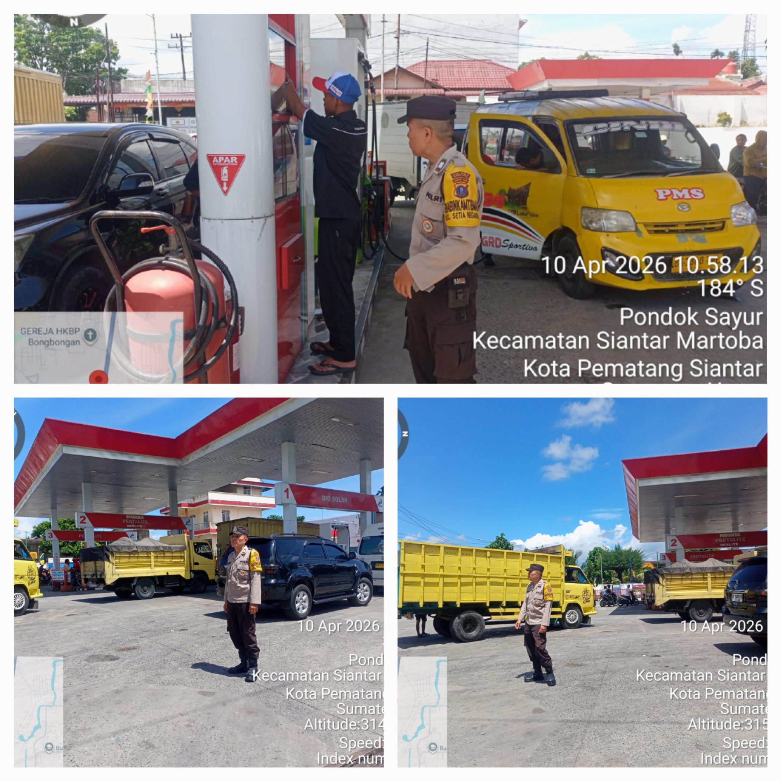 Polsek Siantar Martoba mengambil langkah proaktif untuk memastikan penyaluran bahan bakar minyak berjalan lancar dan aman. Pada Jumat pagi, 10 April 2026, sekitar pukul 09.00 WIB, jajaran kepolisian yang dipimpin langsung Kapolsek AKP Martua Manik SH. MH bersama Kanit Intelkam IPDA Leo Tambunan SH dan personel piket turun ke lapangan untuk melakukan pemantauan dan pengamanan di sejumlah stasiun pengisian bahan bakar umum di wilayah hukumnya.
