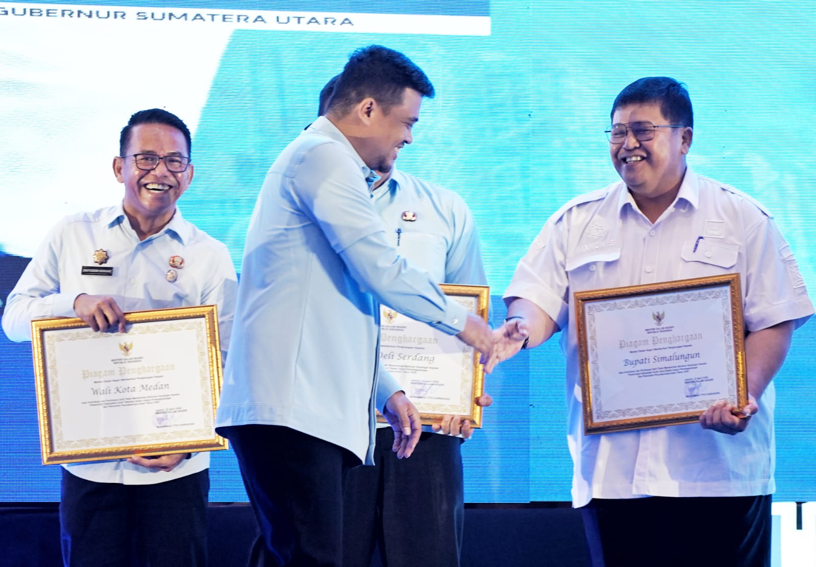 Bupati Simalungun, Anton Achmad Saragih, menerima penghargaan dari Kementerian Dalam Negeri Republik Indonesia dalam forum Musrenbang RKPD Sumatera Utara 2027 yang digelar di Hotel Santika Premiere Dyandra Medan, Rabu (22/4/2026).